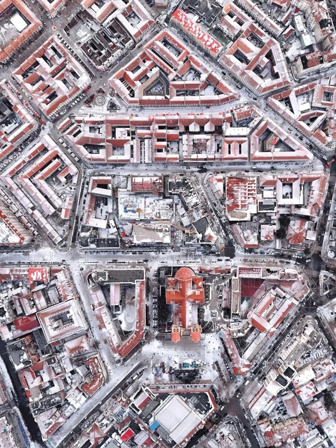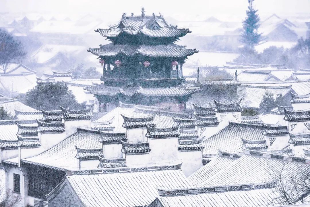 天地间仿佛蒙上了一层白色的纱,老城区变成了童话小镇。