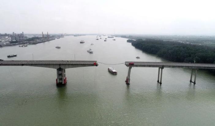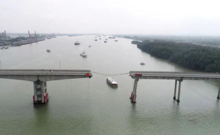 广州南沙一大桥被船只撞断 2人死亡 3人失联