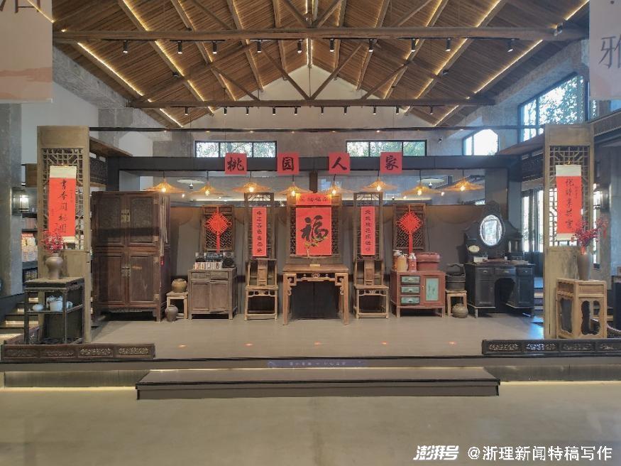 “桃园人家”老物件展陈区则利用了村内的废弃老物件,设计营造出独属于桃园的记忆共鸣。一台老旧的缝纫机、一张历经岁月洗礼的八仙桌、一台老式收音机......这些充满年代感的村民生活用品,它们似乎被遗忘,被时间抛弃,却讲述着无比珍贵的回忆与故事,让桃园往事在新时代熠熠生辉。