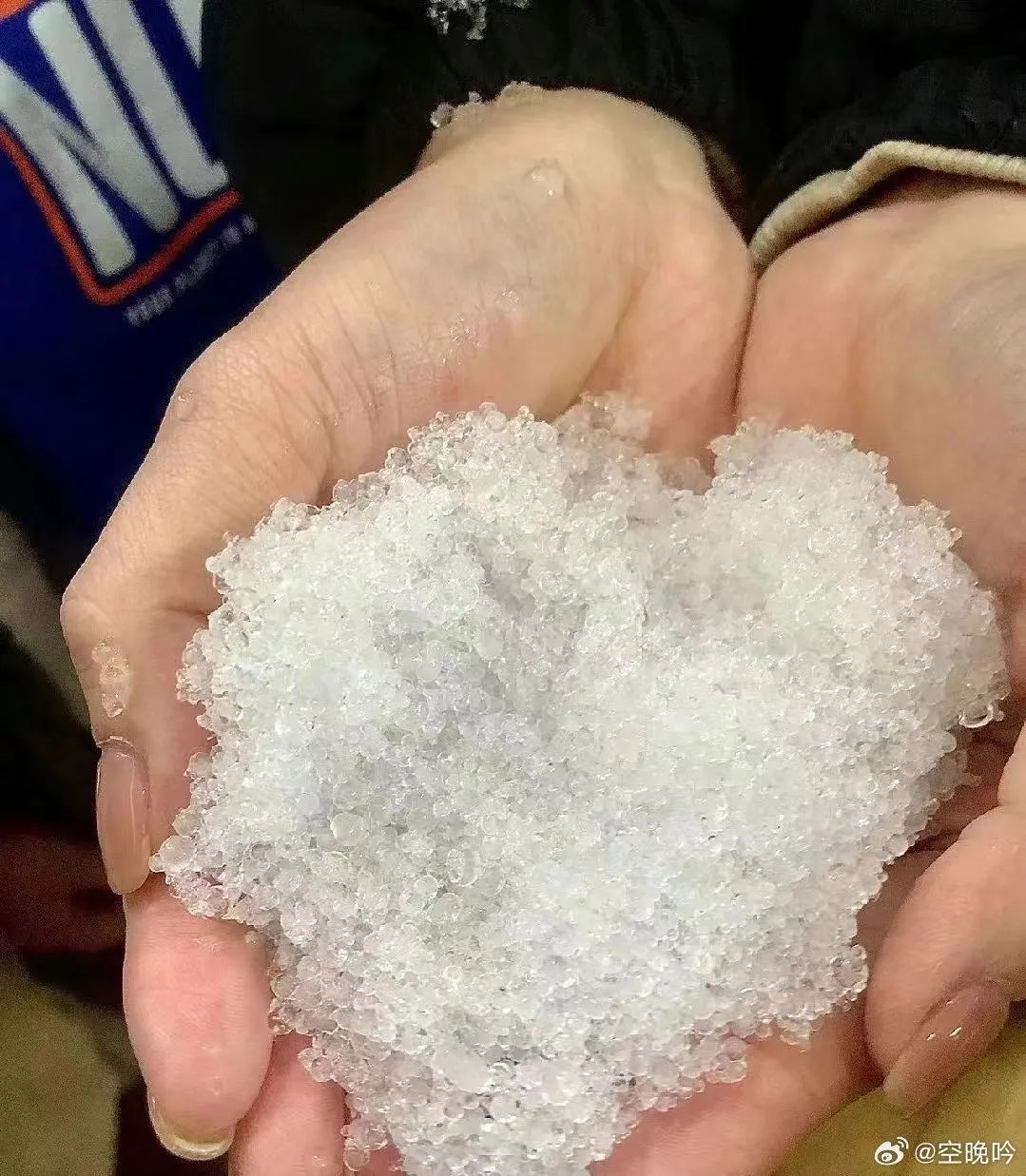 看大小:雪的个头小,落地不易碎。霰的直径通常在2~5毫米,落地容易破碎。而冰粒的直径通常小于5毫米,质地硬不易破碎。