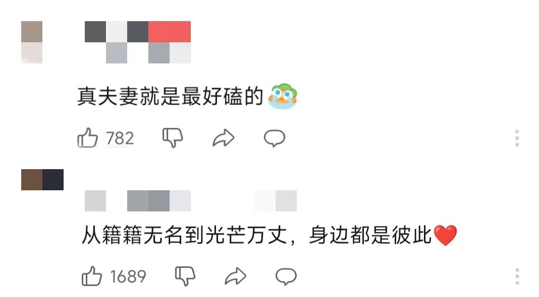 这首歌像是为他们二人量身定做的一般,每一句歌词都是他们相爱的注解。在他们身上,我们能看到爱情最美的模样——你为我站台,我为你开嗓,我们就是彼此事业路上最闪耀的勋章。