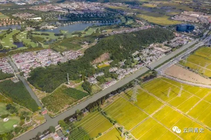 横云山和山下民居(来源:网络)横山位于佘山西南约5公里,距松江老城约10公里,北距机山约2公里。横云山海拔68米,长1.2公里,最宽处0.3公里,山地面积约26.33公顷。山形东西横卧,故名横山。犹如一条扁担,故俗称“扁担山”。据《云间志》载,唐天宝六载(747年),为纪念居此的晋代著名文学家陆云,故改称横云山。