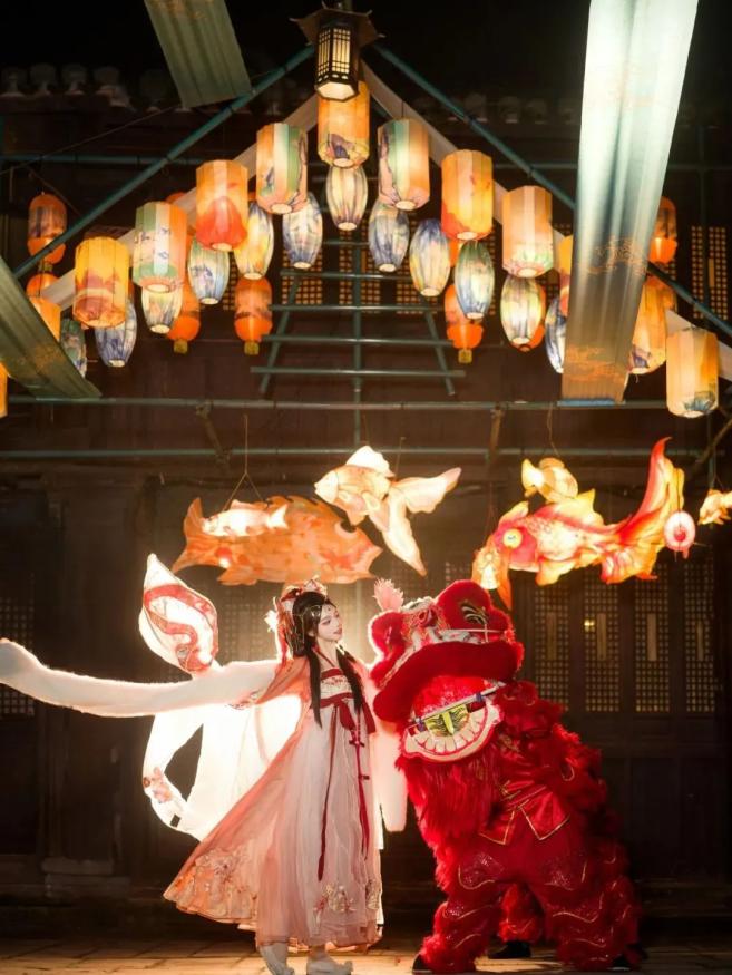 主要内容:通过灯景搭建、氛围营造,打造多角度、全方位的光影盛宴,开启浪漫古镇元宵游园会的沉浸式体验,还有美食市集、包元宵、民俗舞蹈、戏曲表演、猜灯谜、祈福、舞龙等各色活动。
