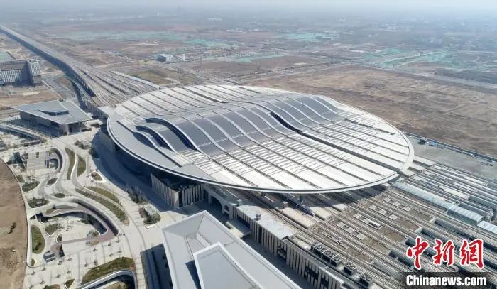 资料图:航拍雄安新区京雄城际铁路雄安站。 韩冰 摄一张交通网,惠及三地人
