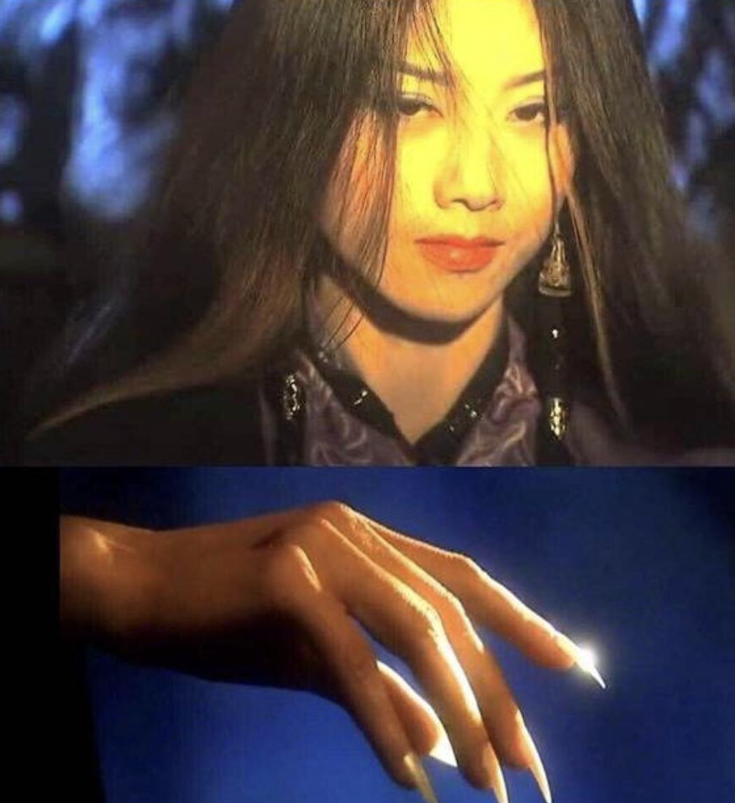 在原生态长指甲的加持下,她练九阴白骨爪的片段如魔女般气场强大,长发随风飘荡,眼神凌厉。