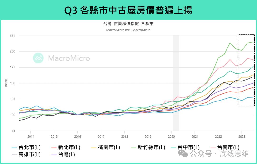 注1:台湾房价所得比逾世界标准,专家揭购屋族困境 根据最新内政部资料,2023年Q2,全台房价所得比高达9.82倍,再次刷新纪录,创有统计来新高,其中,台北市房价所得比15.52倍、新北市12.93倍、台中市11.55倍,都超过10倍以上。