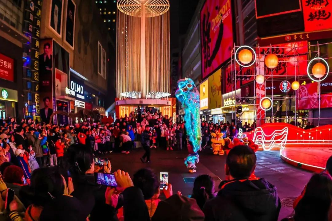 在灯会主城区和南广场,欢乐大蹦迪、舞蹈快闪、醒狮、变脸等多个精彩表演和猜灯谜、猜盲盒等互动活动为广大游客带来无尽的乐趣。