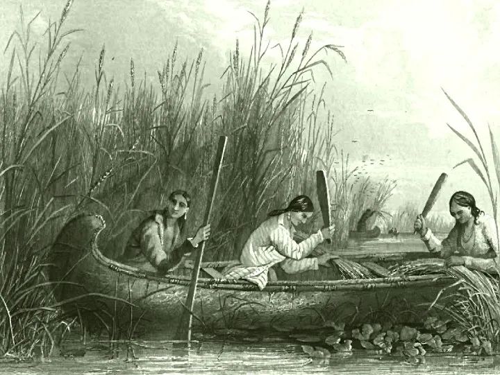 印第安人会在菰还没成熟的时候就将植株捆绑起来,等到了成熟之后,他们就会划着小船把一捆一捆的菰压倒到船上,再用小木棒敲打,从而导致菰米脱落并掉入船中。估计咱们古代中国人也是这么采集菰米的吧!