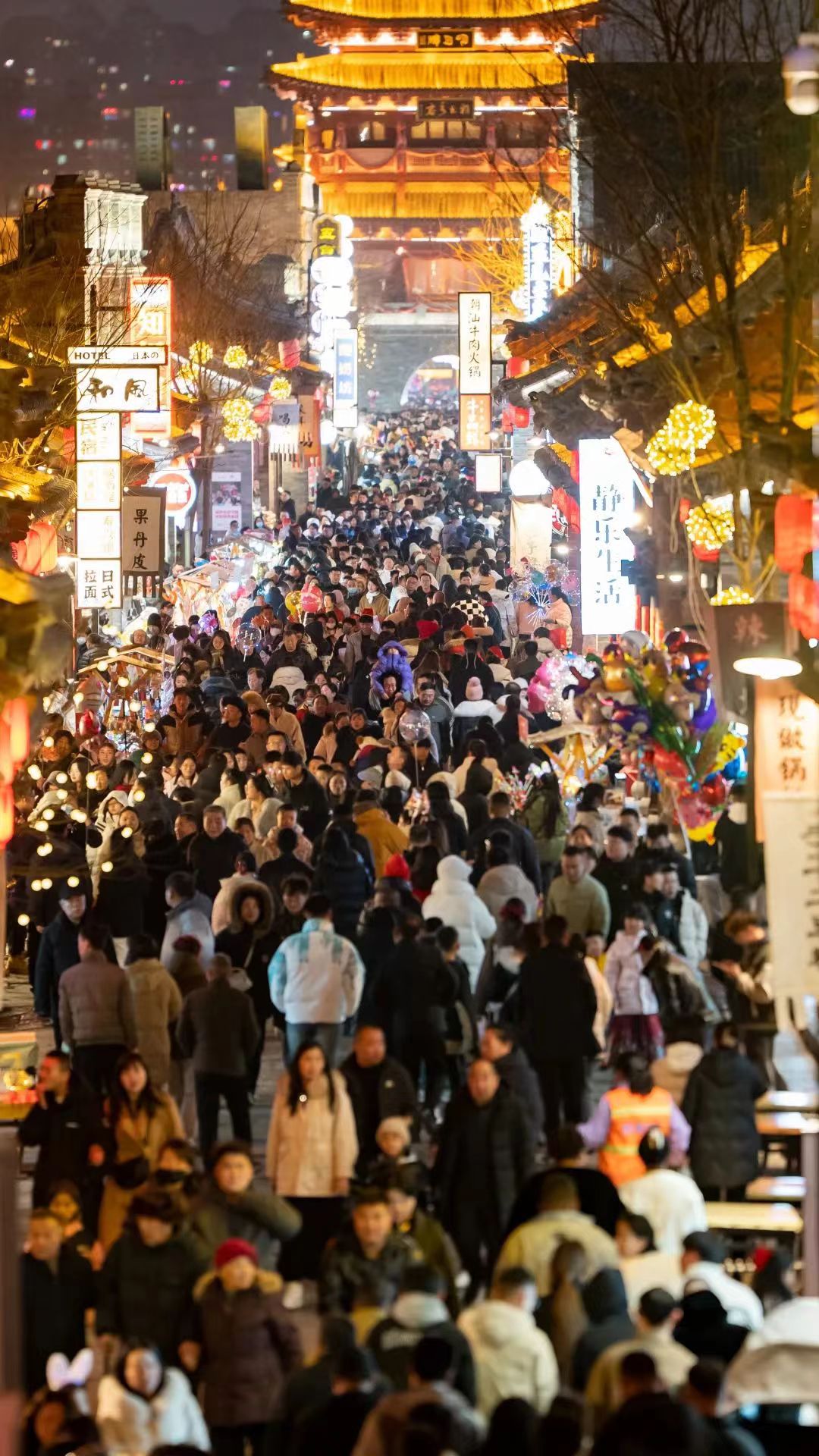 重点景区人气爆满有着两千年历史的忻州古城是国家4A级景区、国家级旅游休闲街区,在春节期间迎来客流小高峰。初一到初五客流量日均突破10万人次,累计接待游客80.88万人次,同比增长17.25%;累计经营收入2500.16万元,同比增长55.93%,位列稳居首位,同时也位列全省纳入监测的旅游景区接待量第一。古城是春节年俗最富集、最有特色的区域之一,新春灯会、舞龙表演、非遗秀场等年俗类活动成为忻州古城吸引游客前来游玩的重要因素。