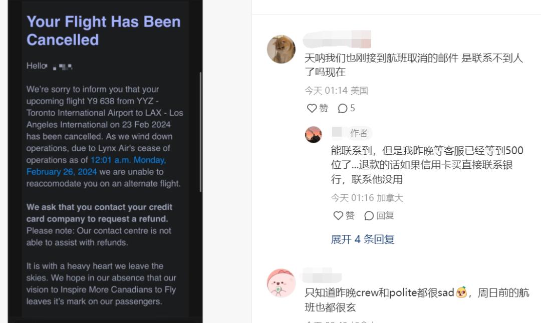 23号官宣破产,26号就停飞,让人有点措手不及,那些预定了Lynx航班机票的旅客怎么办呢?
