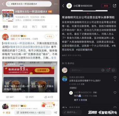 #瑞幸9.9元一杯活动缩水#的话题才爬上新浪微博热搜,“库迪咖啡河北分公司运营总监带头坑害河北联营商”的实名举报帖就出现在了小红书,一时竟分不清这是咖啡圈还是娱乐圈。