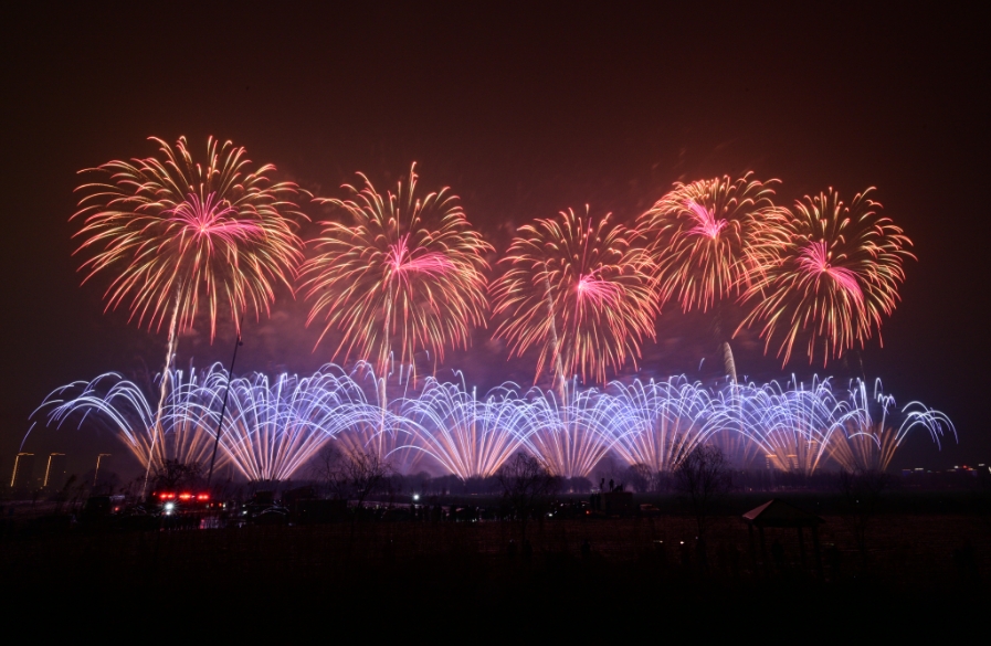 夜幕中,烟花升腾,绽放了无与伦比的华彩,配合无人机,打造了一场绚丽的视觉盛宴;江岸边,喝彩声、欢呼声此起彼伏,人们兴奋地讨论着,久久地回味着……