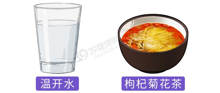 起床后喝一杯温开水,有利于加快身体的新陈代谢,白天也可以多喝喝菊花枸杞茶,帮助清肝明目。