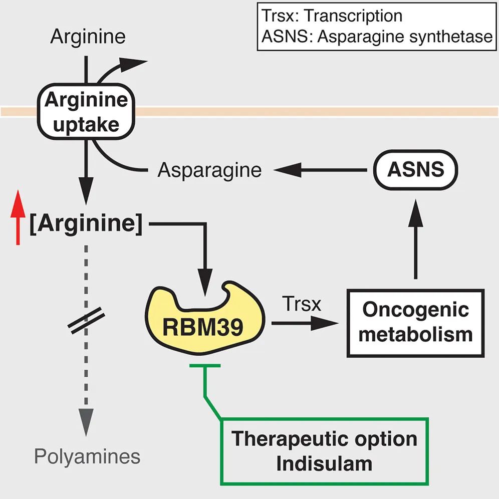 研究团队提出了一种新的治疗策略——靶向癌症特异性精氨酸结合因子(例如RBM39),而不是而不是去消耗精氨酸。从而避免对T细胞的不良副作用(T细胞需要精氨酸来激活)。