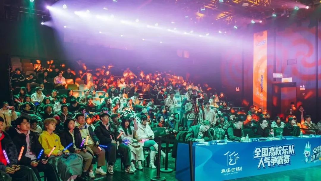 与此同时,全国高校乐队人气争霸赛(总决赛)在珠溪古镇大世界·珠溪剧场火热开战,来自华中、西南、西北、华东、华南五大赛区的50组顶尖选手齐聚珠溪同场角逐,用音乐诠释青春,用才华点亮梦想。