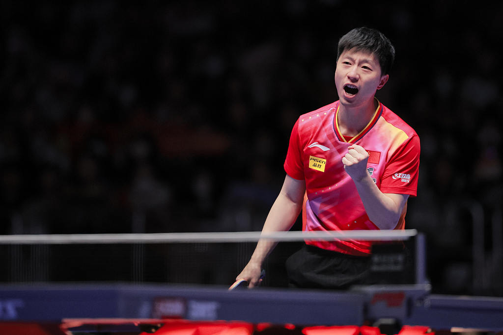 西蒙·高茨回球下网,马龙在25日晚为中国男队拿下通向釜山世乒赛团体赛冠军的最后一分后,用右拳轻轻敲了一下球台。