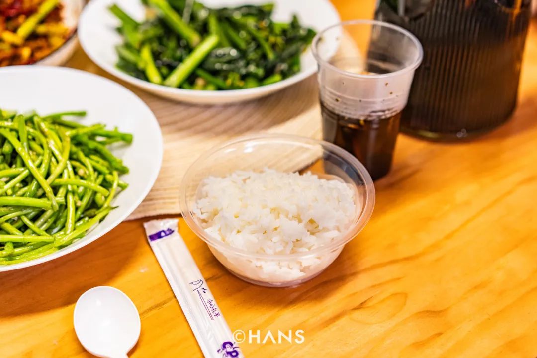 女友给他支招,尽量别吃米饭,各种菜吃点,主打雨露均沾,不然这顿还在胃里,下一顿已经打上门来了。