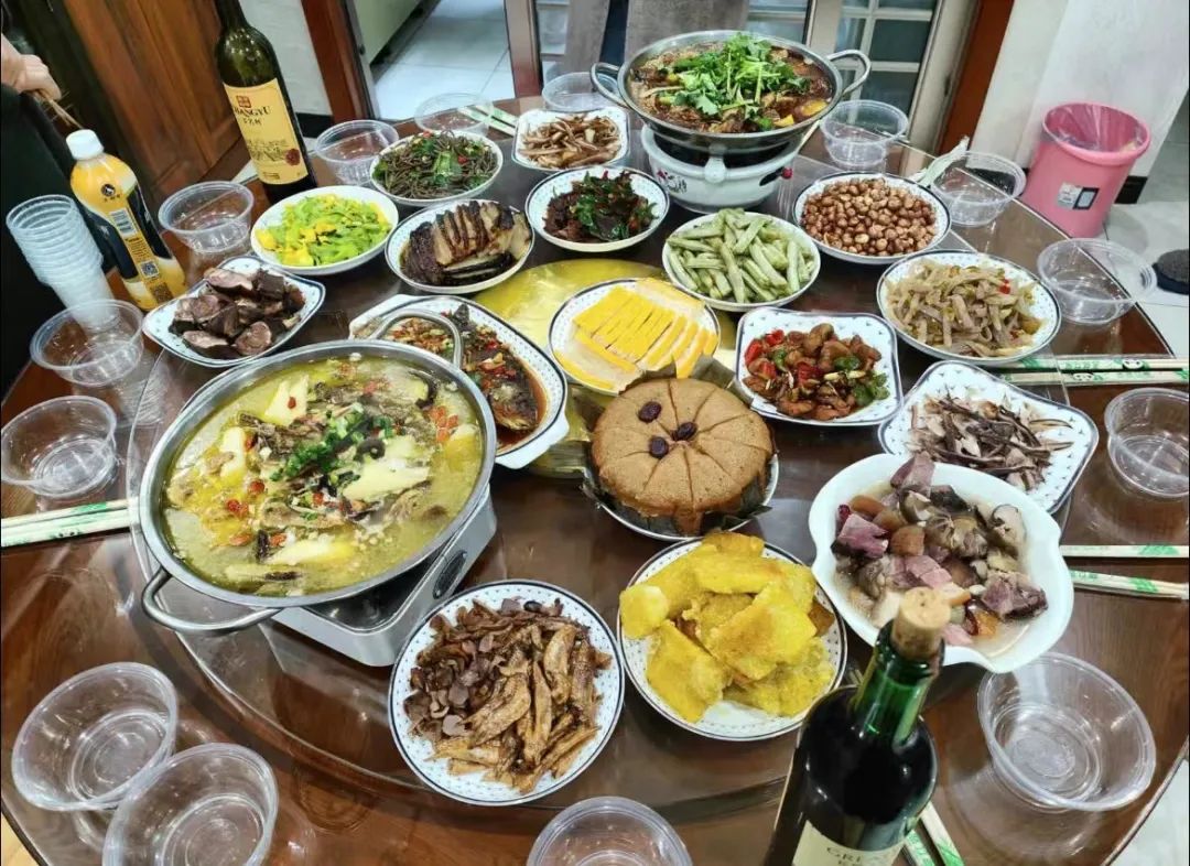 图源自小红书用户@贝贝的猫舍东北男生鹏子去宜昌女朋友家,直呼要备几盒健胃消食片撑场面。一桌坐满七八个大汉,从开始到结束,菜只受了点轻伤。