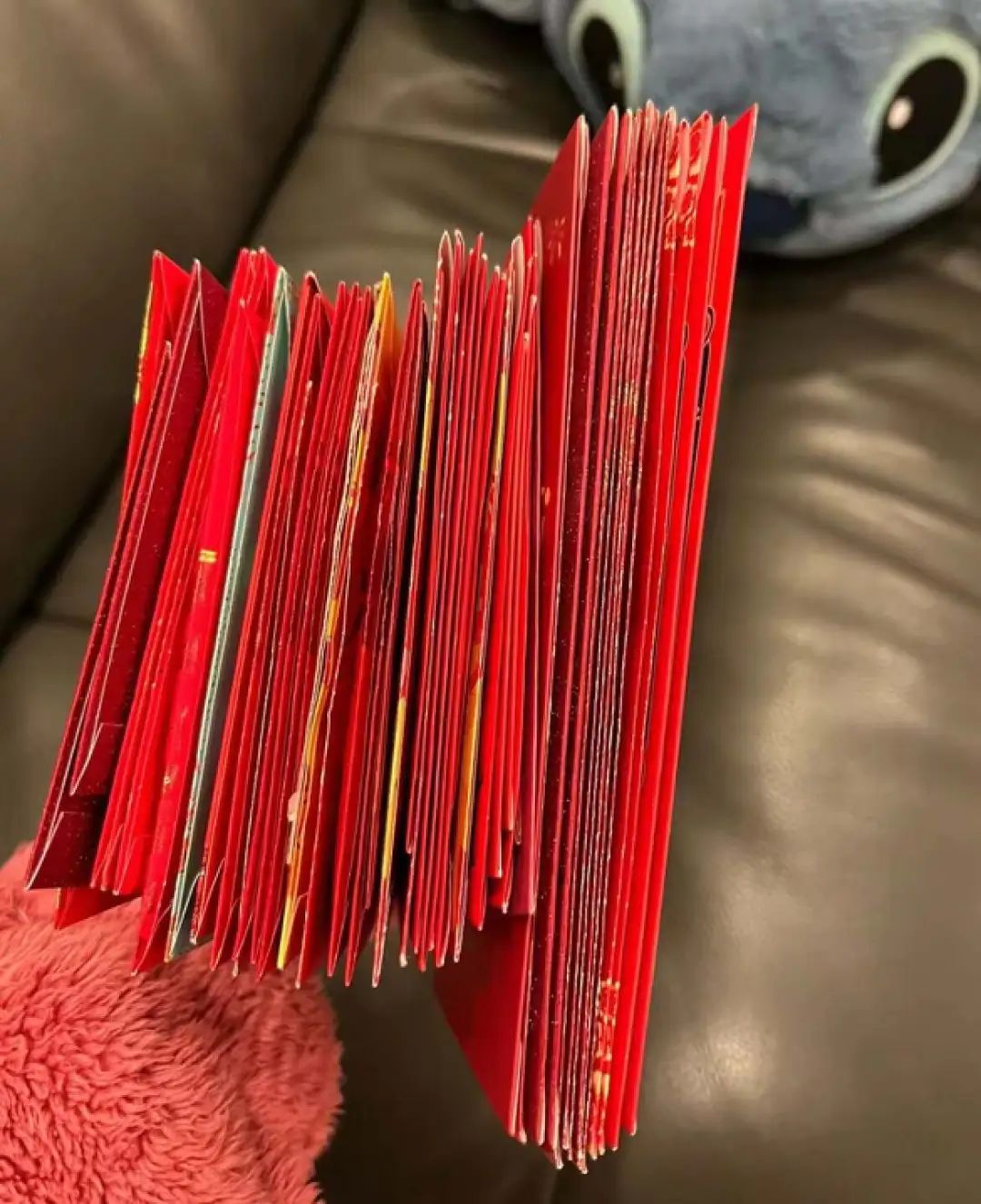 图源自小红书用户@柏霖娇妻正月里,逢人就给。长辈给晚辈,已婚给未婚,隔壁邻居、小区保安,出门喝茶时的服务员,都是派发利是的对象。