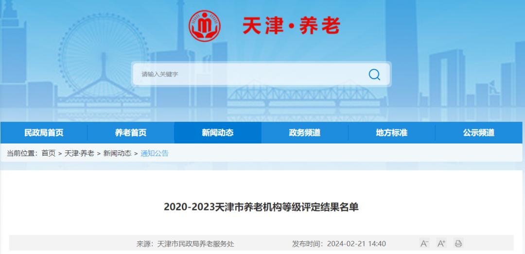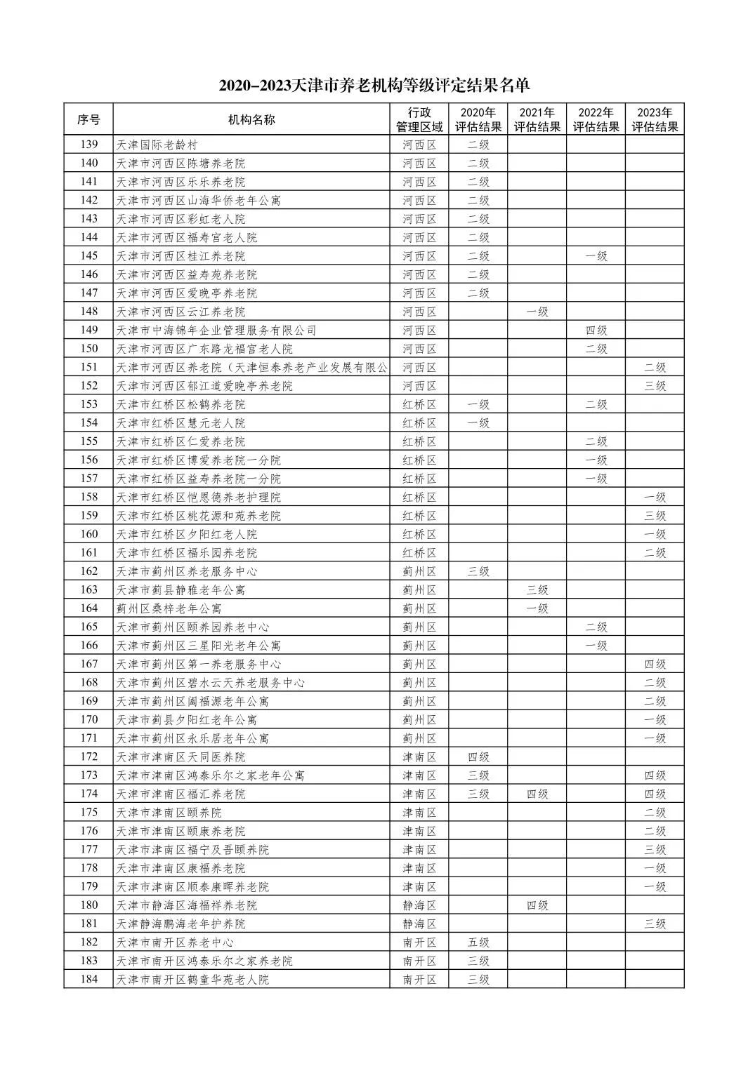 原标题:《最新 | 天津228家养老院等级评定结果公布!》