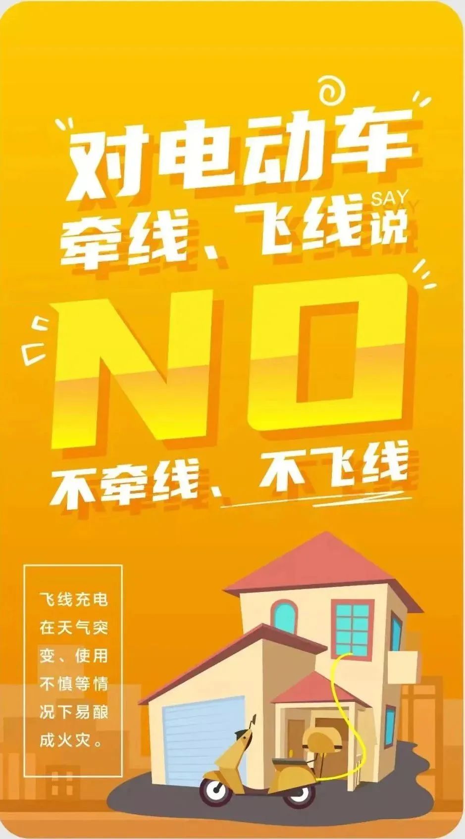 5、不要将电动车停放在楼道处,不要占用堵塞消防车通道,应将车停在小区车库。如需充电,也要在指定地点充电,切勿私拉乱接电线及飞线充电。