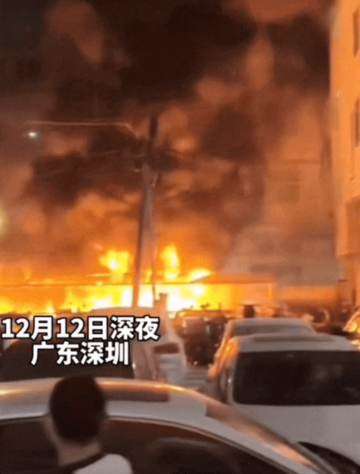 2022年12月12日,广东深圳一小区电动自行车充电棚深夜起火,数十辆电动自行车被烧,现场发生剧烈爆炸。所幸消防员及时处置,无人员伤亡。05