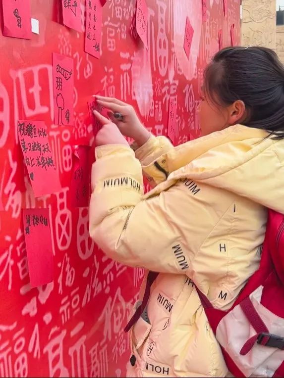 现场随处可见灯谜条签,涵盖字谜、成语、歇后语等,兼具娱乐性与知识性,猜对灯谜还能获得奖品。活动现场还设置了元宵祈福环节,参与群众可以抽取一支属于自己的祝福签,并在背面书写自己的新春愿望。