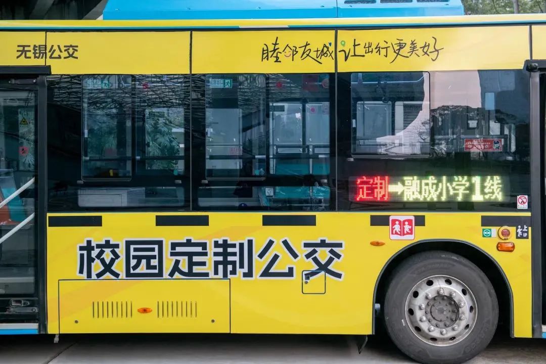 3、【柠檬黄!32辆公交“新装”上线!】2月26日,无锡公交首批32辆校园定制公交“解锁”柠檬黄新外观,醒目涂装让公交更亮眼、出行更安全!校园定制公交通体为柠檬黄,与车身黑色字体形成鲜明对比,腰线处贴有黄黑相间反光警示条,确保恶劣气候下也有一定警示效果。