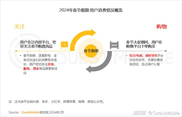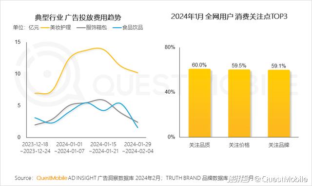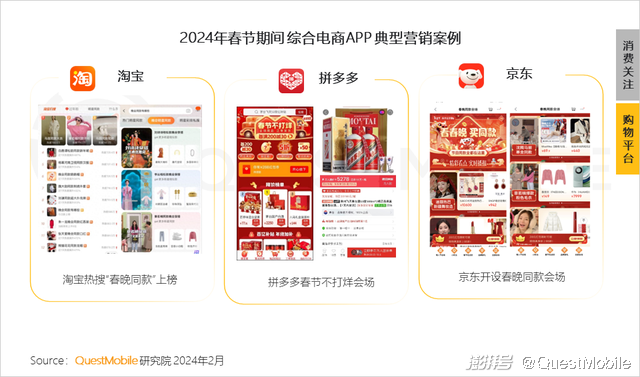 1、春节期间,用户置新物、送礼品等消费需求增长,广告主加大广告投放力度,吸引用户关注,食品、美妆、服饰等消费品行业成品牌竞争主战场;电商平台从品质、价格、品牌方面切入,开展营销活动,抢占用户心智