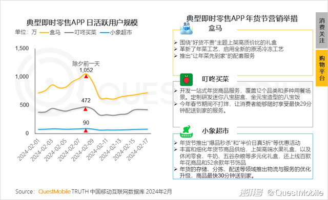 6、【拼秒杀,即时达】即时零售平台备战年货节,成为传统电商和线下超市外的新力量;典型平台推出高端礼盒、开展价格促销、优化升级春节期间配送服务,助推平台在除夕前一天流量达到高峰