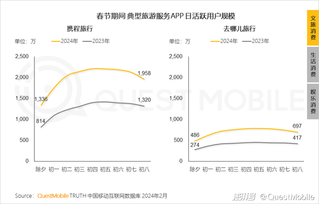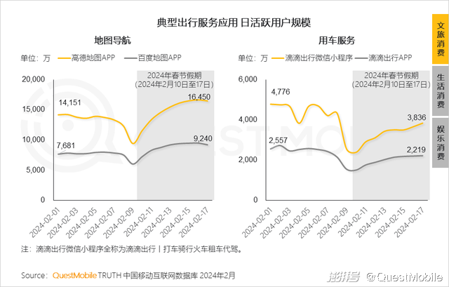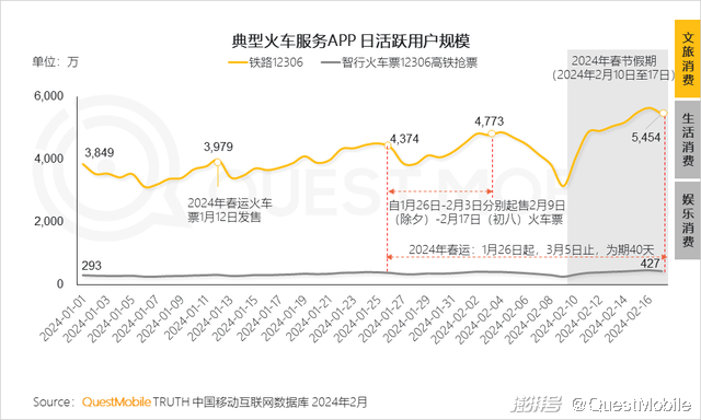 2、春节期间,用户“返乡+出游”需求旺盛,随着春运火车票开售,出行热情快速提升