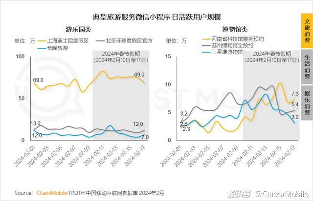 6、游乐园、博物馆类作为家庭旅行的热门景点,各类景点随着春节活动安排差异,形成流量错峰