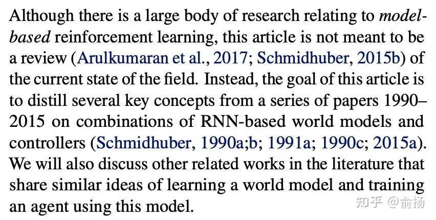 基本意思就是,不管有多少model-based RL工作,我是RNN先驱,RNN来做model是我发明的,我就是要搞。