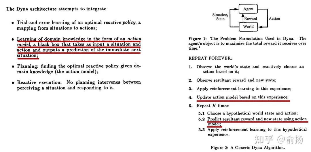 聪明的Sutton在很久以前就意识到model不够准确的问题。在1990年提出Dyna框架的论文Integrated Architectures for Learning, Planning and Reacting based on Dynamic Programming(发表在第一次从workshop变成conference的ICML上),管这个model叫action model,强调预测action执行的结果。