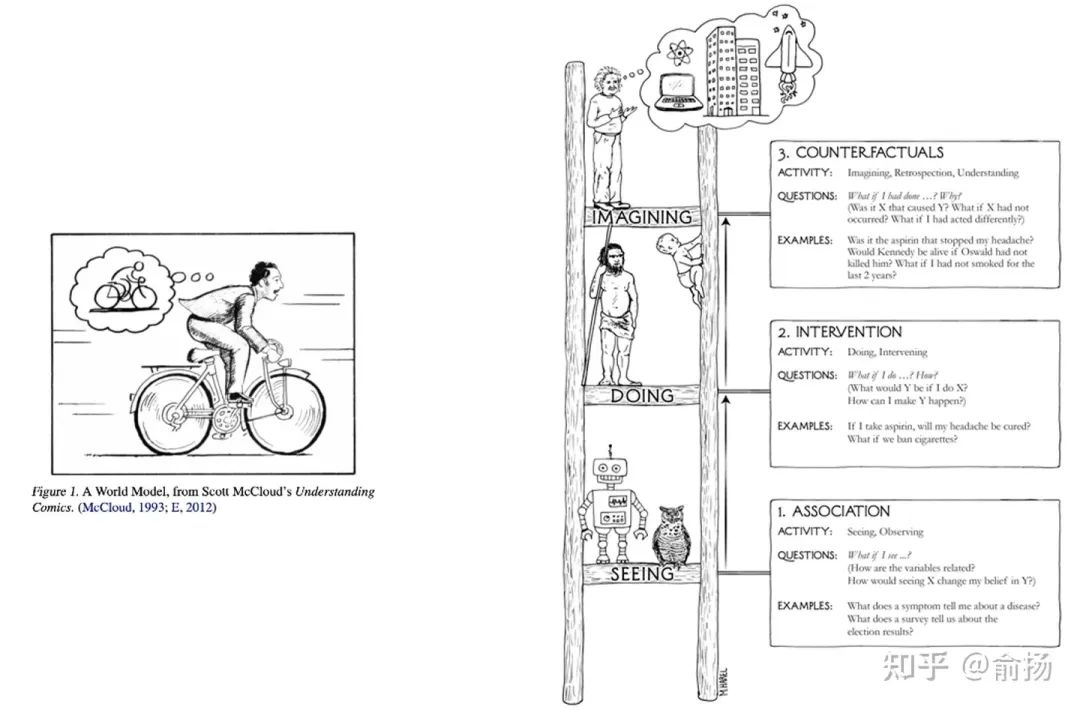 左:Jurgen论文中的世界模型示意图。右:Judea书中的因果阶梯。