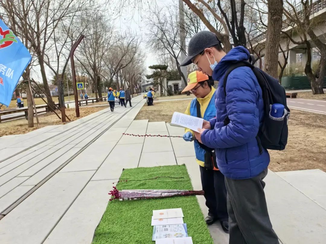 上午10点,海淀控烟志愿服务队的16名队员,同时也是“学院路引导员学雷锋志愿服务队”的红岩志愿者们不顾寒冷,走出温暖的家门,身着整齐的队服,外罩控烟蓝马甲,来到京张铁路遗址公园,以“环园行走”的行式开展了新颖而庄重的控烟宣传活动。