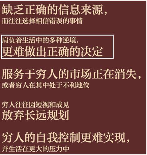 其中很重要的一点,就是穷人在许多不利的境况面前,更难做出正确的决定。