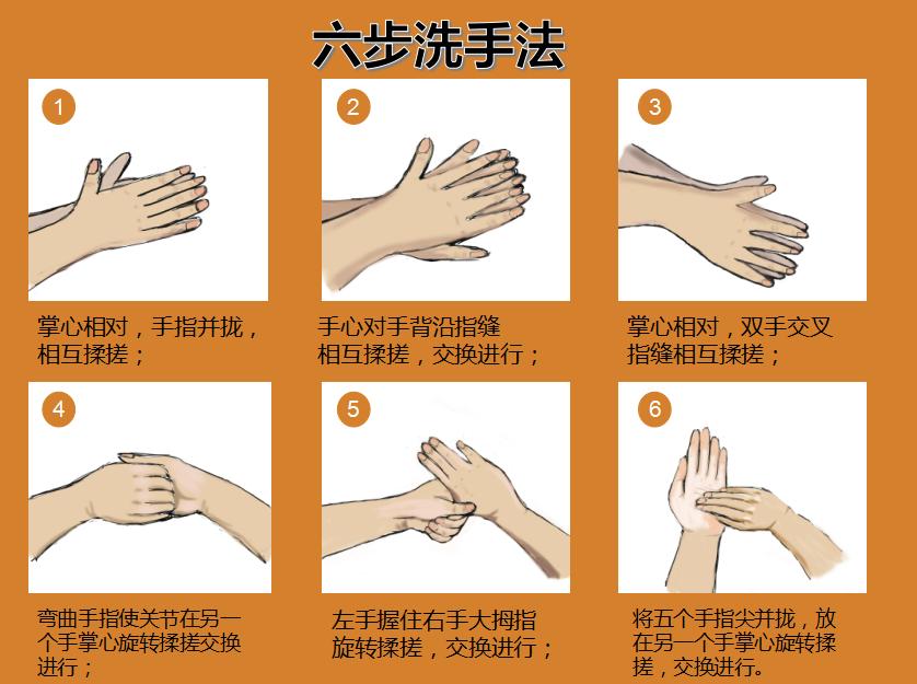 1.注意手部卫生。饭前、便后、加工食物前应按照6步洗手法正确洗手,用肥皂和流动水至少洗20秒。消毒纸巾和免洗手消毒剂对诺如病毒无效,不能代替洗手。