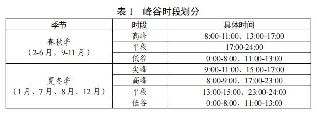 (一 )统一大工业电价用户和一般工商业电价用户峰谷时段。具体时段划分见表1。