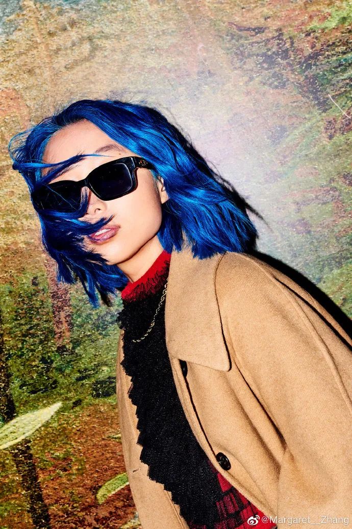 拥有一头标志性蓝发的她