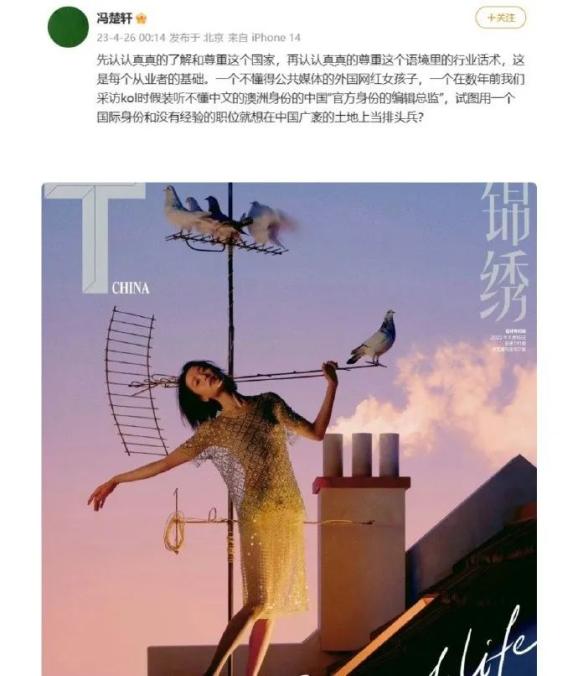T杂志主编冯楚轩疑似深夜发文怒斥。