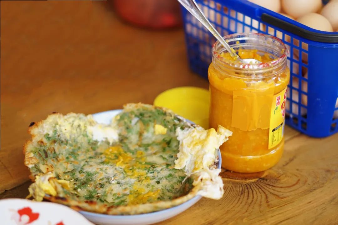 用鼠曲草摊个蛋饼,抹点黄椒,解馋的同时,带点清热解毒的药效,将药食同源进行到底是国人不变的追求;