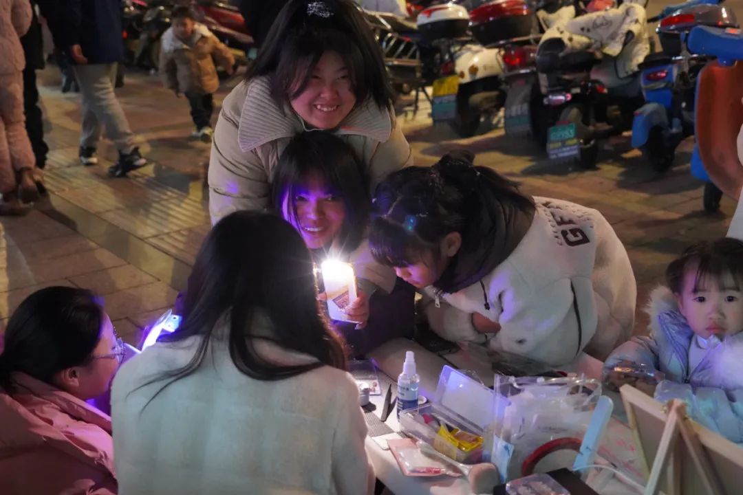 但看样子最欢乐的还是做指甲,小地方的姑娘,用做指甲的方式来犒劳辛苦了一年的自己。在手机手电筒的照耀下山城的妹子的美甲和她的六颗牙一样闪亮,这就是过年吧,理直气壮地对自己好,恣意地笑,给紧张了一年的自己松绑。