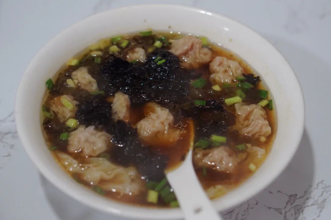 到处都晒的梅干自然地运用到各种菜品里,连扁肉汤里都吃到了梅菜,因为富余,所以常见。