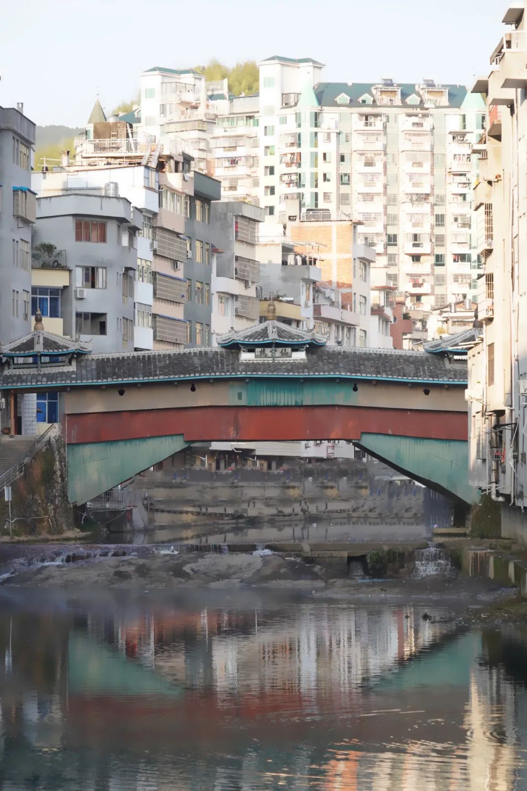 掩映于葱茏的青山之中,流水相照,廊桥岂有不美之理。