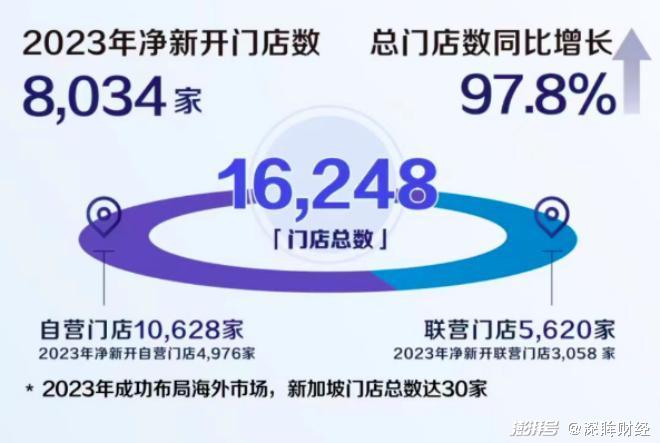 截至2023年,瑞幸在中国总计已拥有门店16218家,其中,净增加门店数量为8034家。业内预测,2024年,瑞幸咖啡门店数将突破2万家。