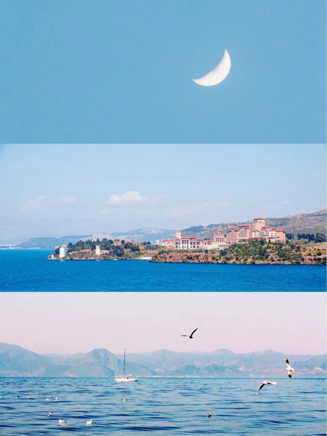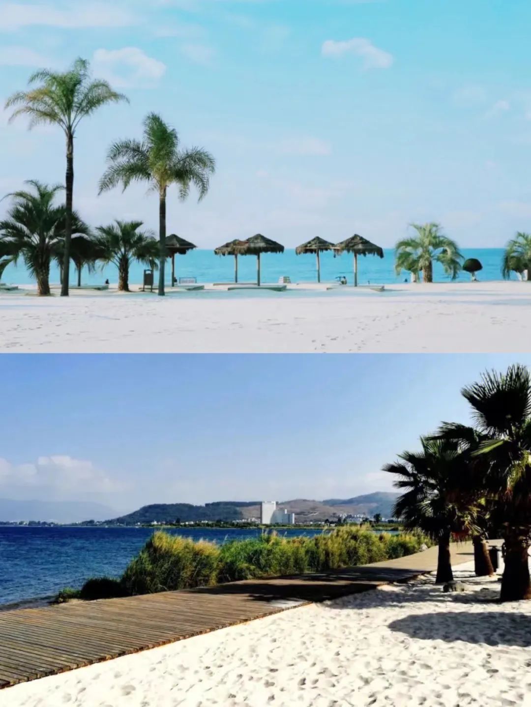 小红书@ 骄傲的摩羯虽然只是湖水,却拥有着蓝天、湛蓝的湖水,还有金沙滩。水量是洱海的6倍,更大气也更磅礴,一点都不输三亚的亚龙湾。