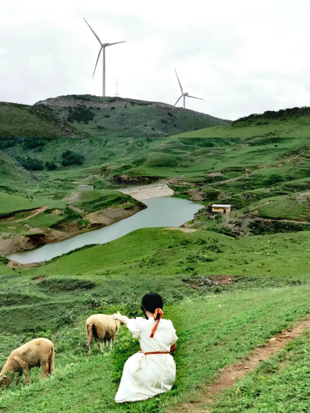小红书@ 拾壹时间在这里过得好慢好慢,就像转动的风车一般,放羊的牧民带着欢喜走过。