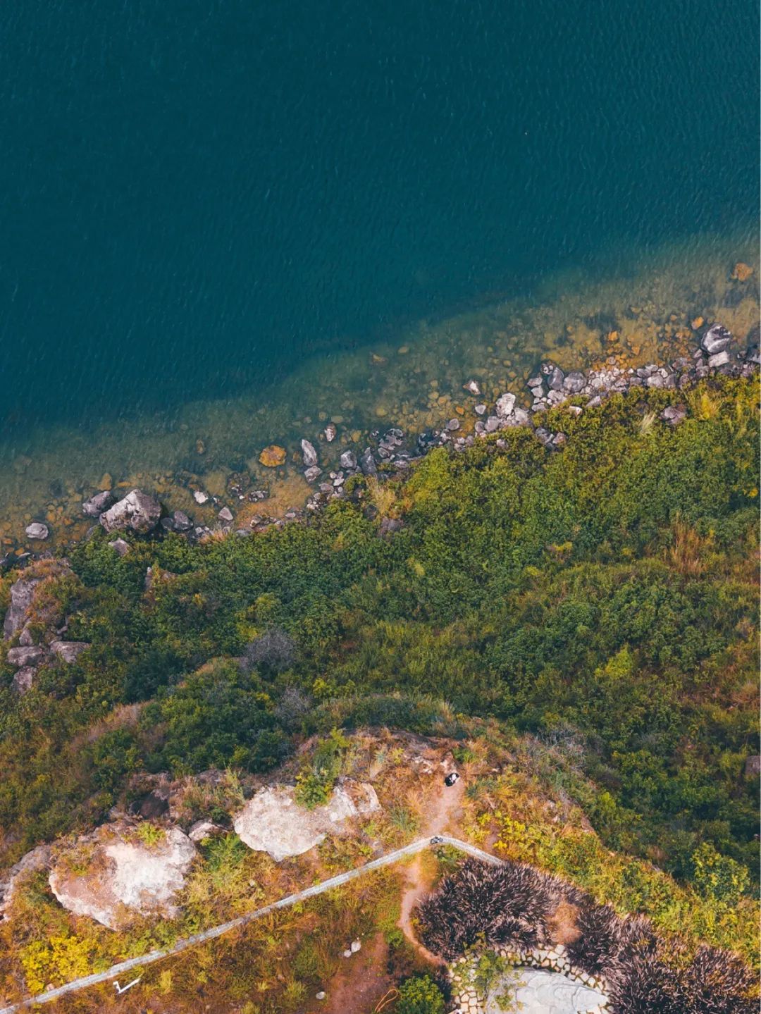 小红书@一罐热茶沿着栈道看抚仙湖,在这里徒步,用脚步丈量这抹湛蓝。一汪流动的湛蓝,充满治愈的力量。