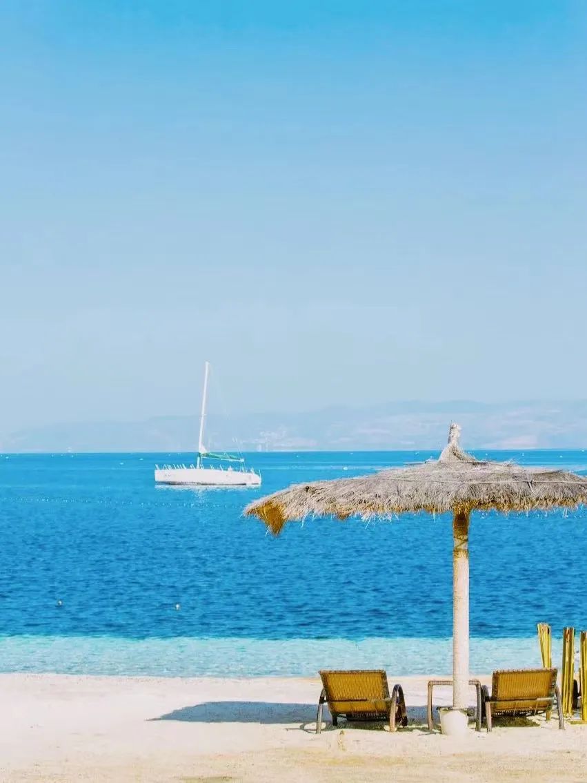 小红书@Florann湖上停满了宝石蓝色的渔船,湖水很清澈,你可以赤着脚在沙滩上玩耍。
